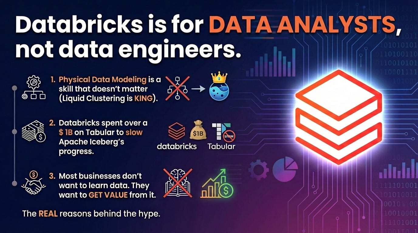 When the answer to the question: “How to make my job more efficient?” is “Just let Databricks handle it.” It undermines the value of truly understanding how data works.
