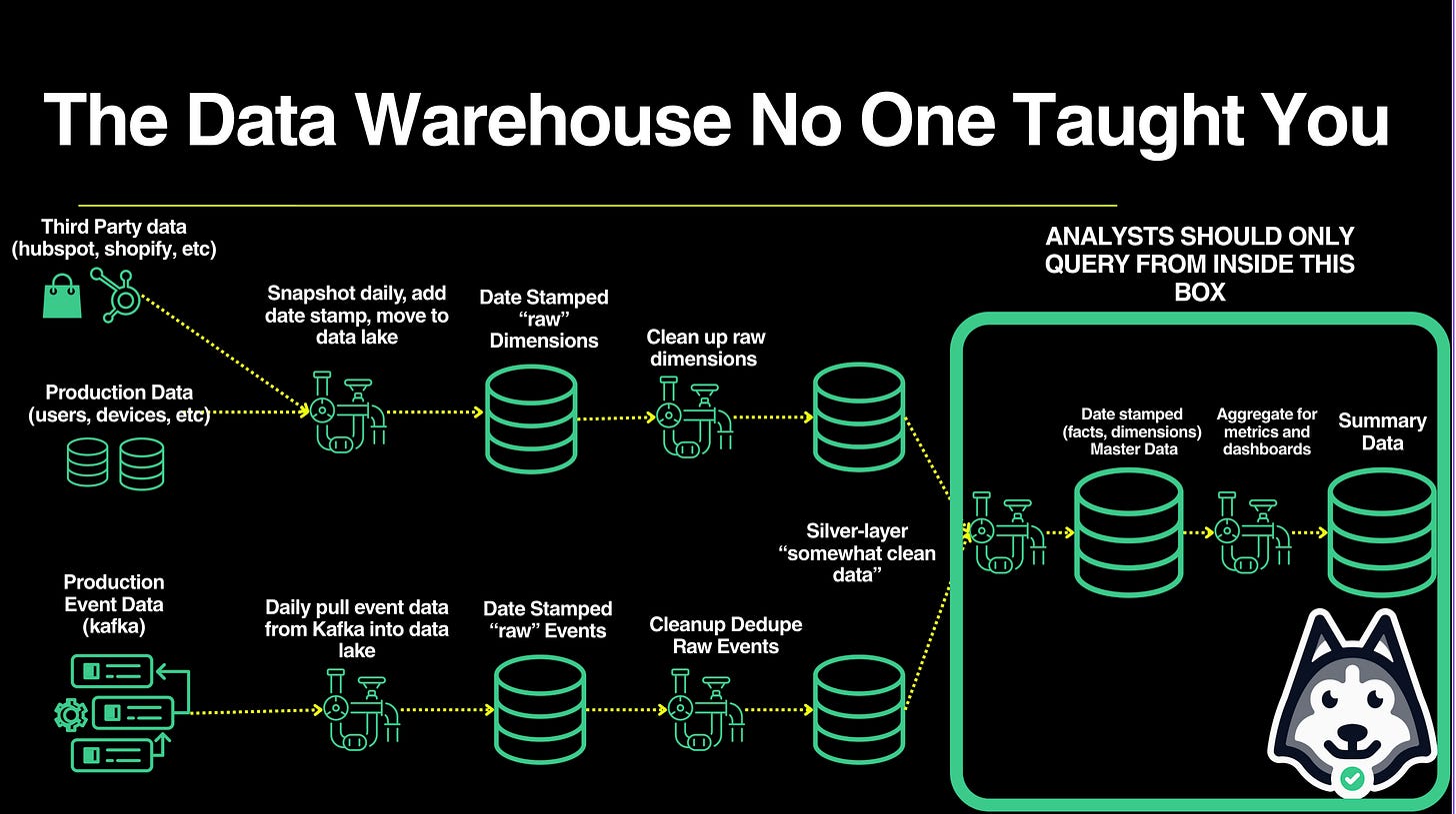 Great article, thank you! Really enjoyed learning about the differences between data warehouse tables vs production tables, and how the latter should feed the former. Will be waiting for part 2.